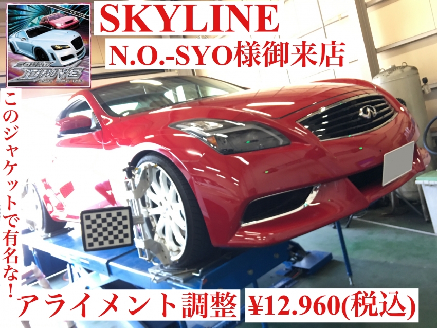先日、私がTwitterで仲良くさせて頂いてるお客様のスカイラインがアライメント調整にご来店いただきました!!