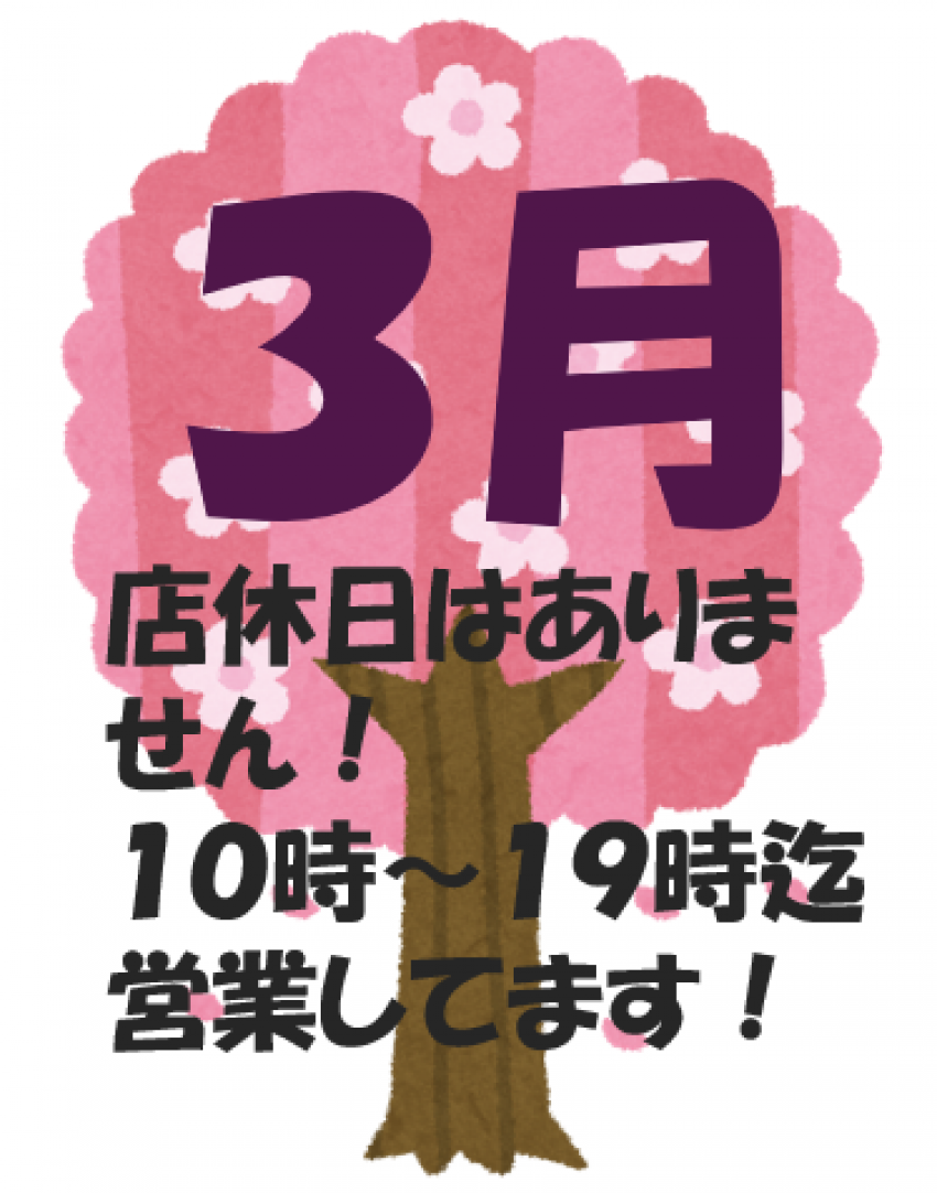 三月はお休み無しで営業させていただきます!