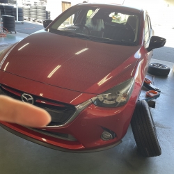 フロントタイヤの片減りがありましたのでアライメント調整も同時施工です!!!