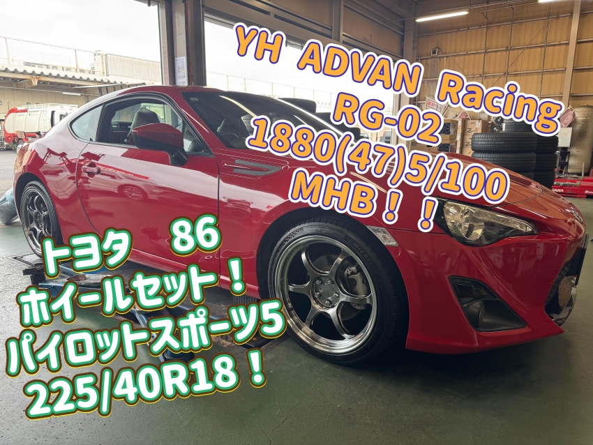 トヨタ 86 ホイールセットでタイヤ交換とアライメント調整をお任せ頂きました!!タイヤはミシュラン製のハイグリップタイヤ パイロットスポーツ5!!タイヤ交換と同時にアライメント調整も行いました!!足利・太田・桐生・邑楽エリアにお住いの方、その他の地域にお住いの方も是非!