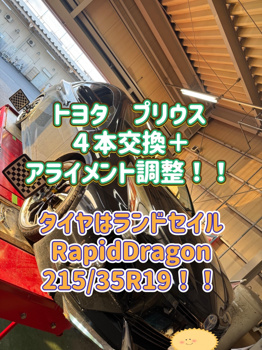 トヨタ プリウス タイヤ交換とアライメント調整をお任せ頂きました!!タイヤはアジアンメーカーランドセイル製の夏タイヤ!!大口径タイヤは是非当店へ!タイヤ交換と同時にアライメント調整がベスト!!足利・太田・桐生・邑楽エリアにお住いの方、その他の地域にお住いの方も是非!
