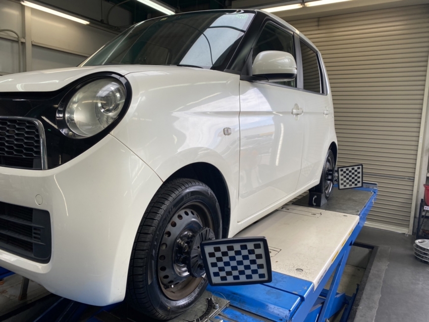 ホンダ エヌワン 直進走行中に左右にふらつきやすいとの事でアライメントをご利用頂きました、測定した結果はトーアウト状態でタイヤが外を向いてしまっておりました。