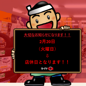 明日は定休日となっております!!こんにちはタイヤ市場駒形店です!!明日2月...