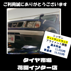 こんにちは!タイヤ市場花園インター店連日稼働中(^^)/アライメント調整...
