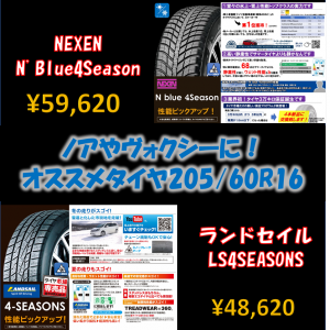 今回は、トヨタノア・VOXYの17インチ205/55R17のオールシーズンタ...