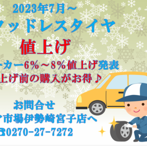 タイヤ市場伊勢崎宮子店です2023年7月よりスタッドレスタイヤ各メーカー値...