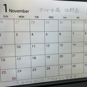 11月、お休みなく営業します(^o^)/タイヤの事ならタイヤ市場(^^ゞ