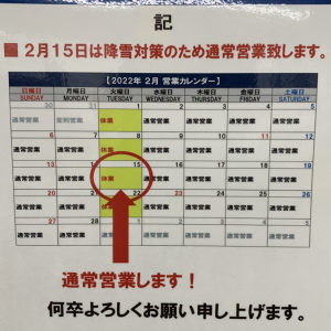 明日2月15日は急遽通常営業となります!! お間違えなく