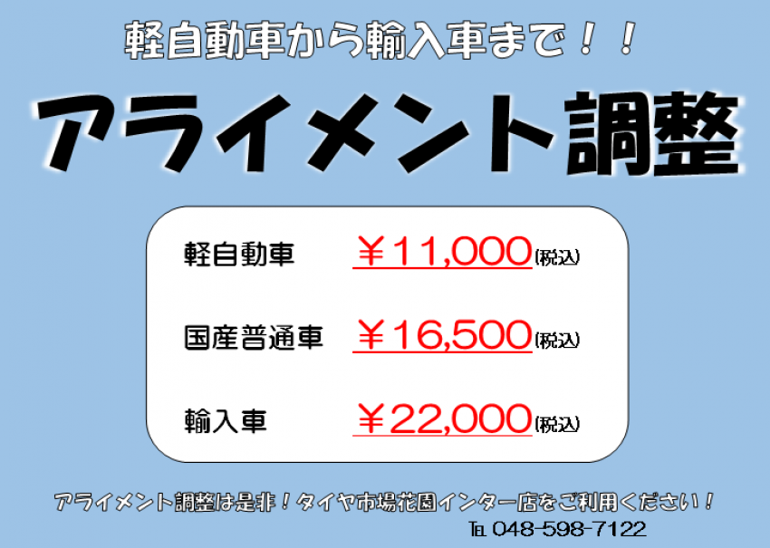 アライメント調整受付中です!