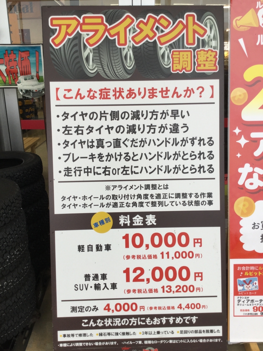 お車のアライメント調整をご希望の方はバロータイヤ市場まで!!
