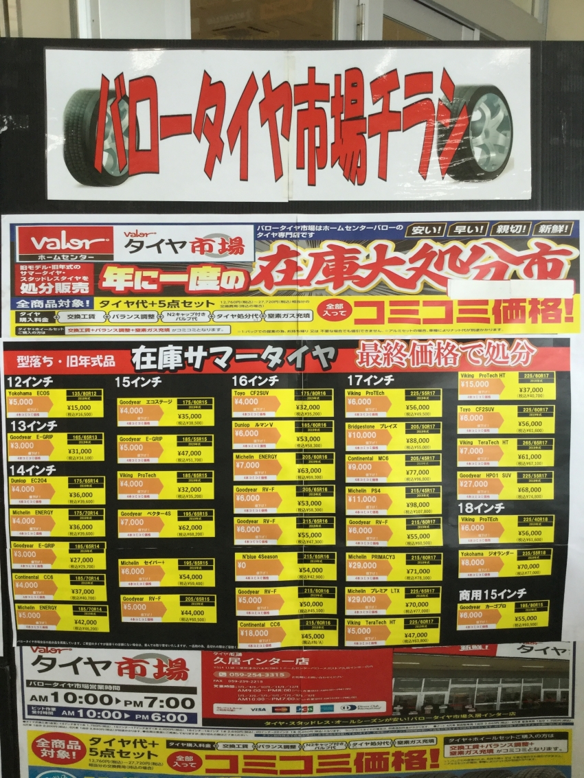 ホームセンターバロー久居インターテンタイヤ市場では