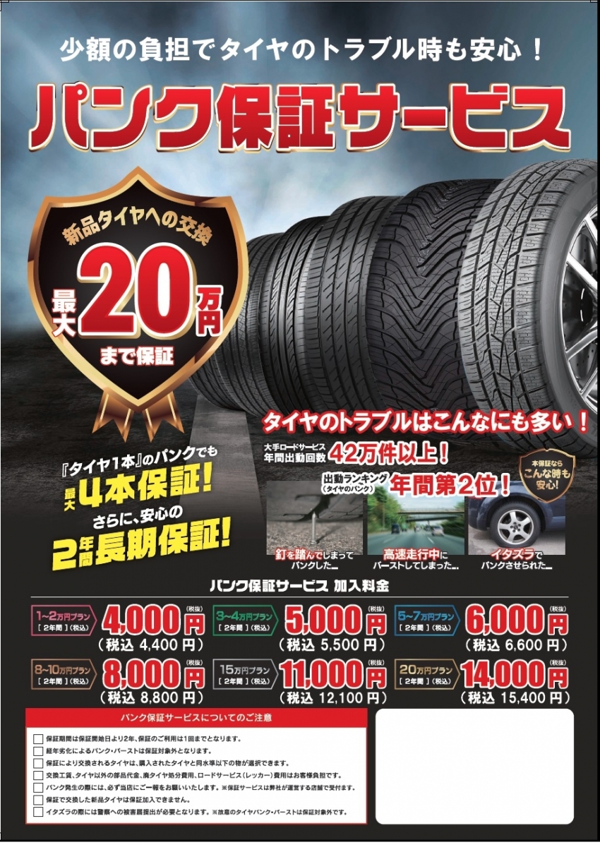 パンク保証サービスのご案内!
