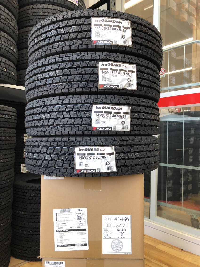 今回はスズキ キャリイにYOKOHAMAアイスガードiG91をホイールセットでお取り付けさせて頂きました(`・ω・´)オーナー様ありがとうございました(⋈◍>◡<◍)♡