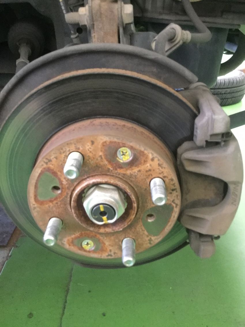 タイヤ交換のお車のタイヤを外す際に錆でホイールが固着しておりました。