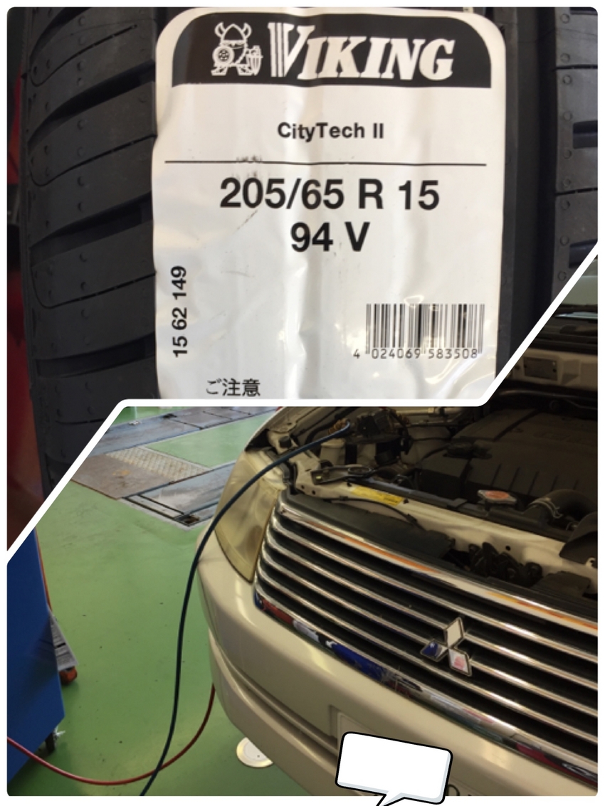 三菱 RVRタイヤ4本交換&カーエアコンガス真空引き!