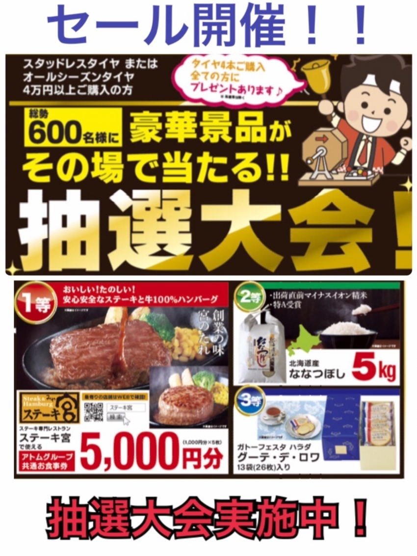 豪華賞品が当たる抽選大会実施中です(^^)/