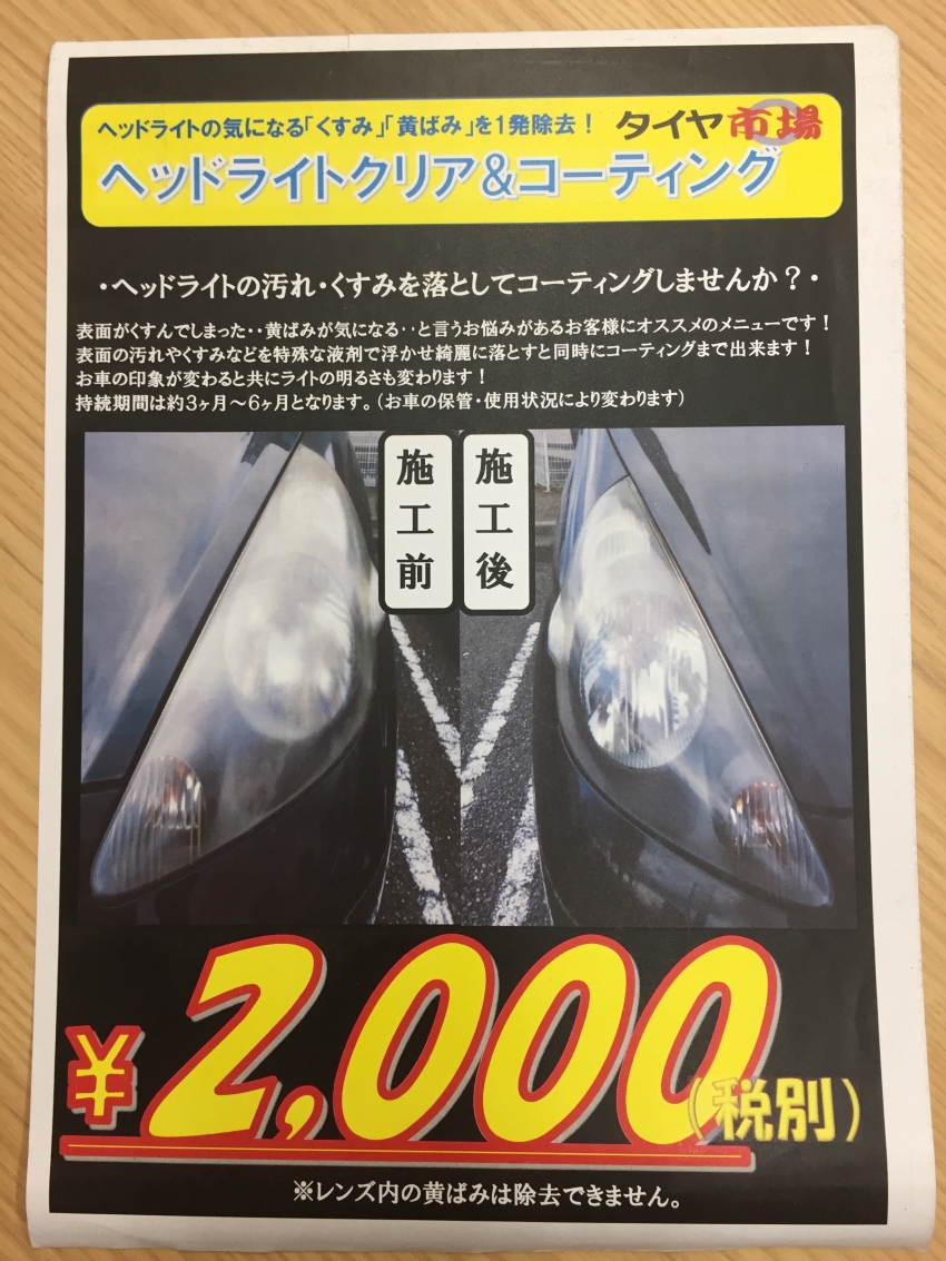 当店ではヘッドライトクリアコーティングも