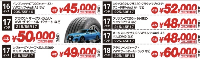 ※コミコミ価格には、タイヤ4本購入料金と