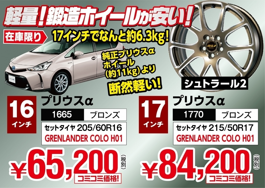 トヨタ車オーナー様必見!!鍛造軽量ホイールが大特価!!