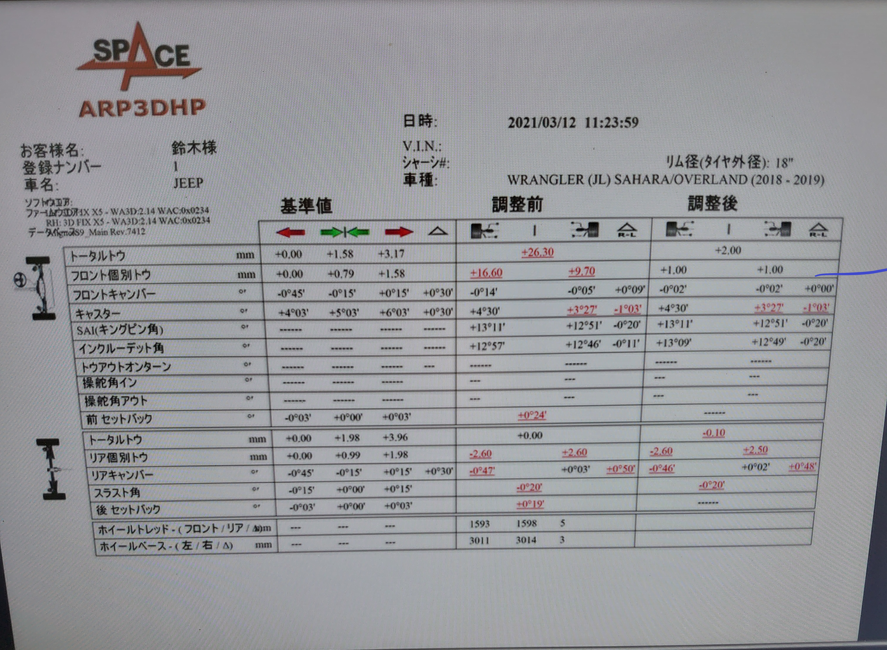 こちらが測定・調整後の数値となっています。