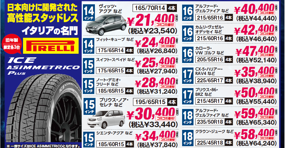 ピレリのスタッドレスタイヤが安い!!