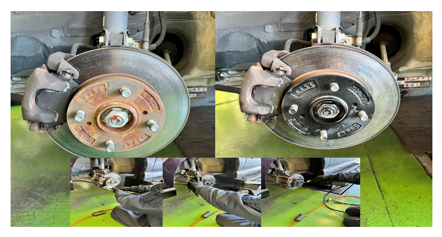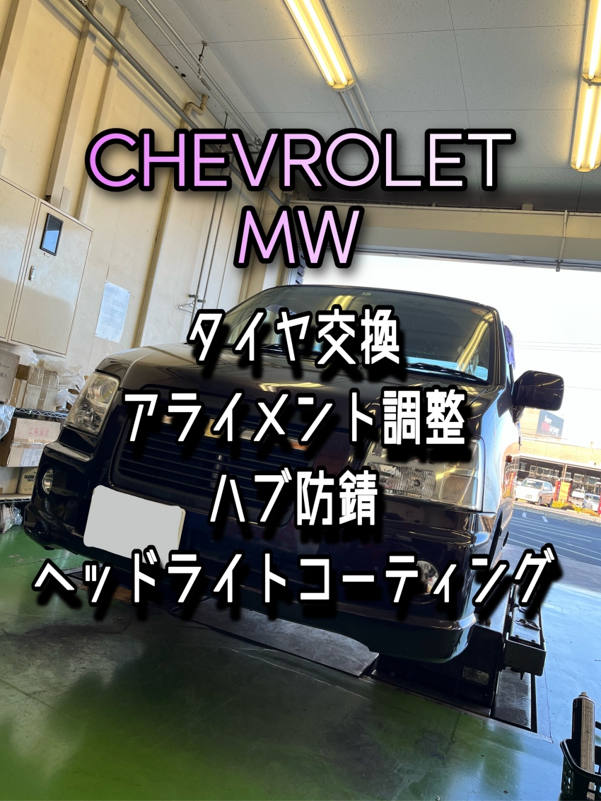 シボレーMWにオールシーズンタイヤ装着!!アライメント調整&ヘッドライトコーティング&ハブ防錆も作業しました!【サイズ165/60R14】