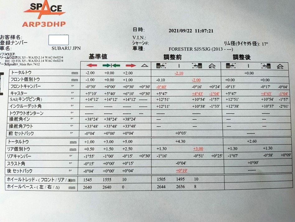 フォレスターのアライメント調整させていただきました!!