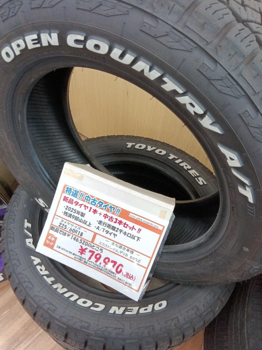 中古のタイヤが3本と新品のタイヤが1本で¥79,970でご案内しています。