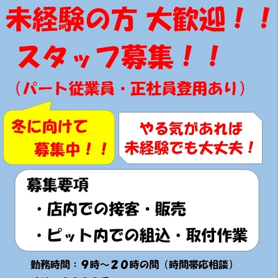 AM9:00~PM8:00(ピット作業受付:AM9:00~PM7:00)1月/2月/5月/6月/7月/8月/9月