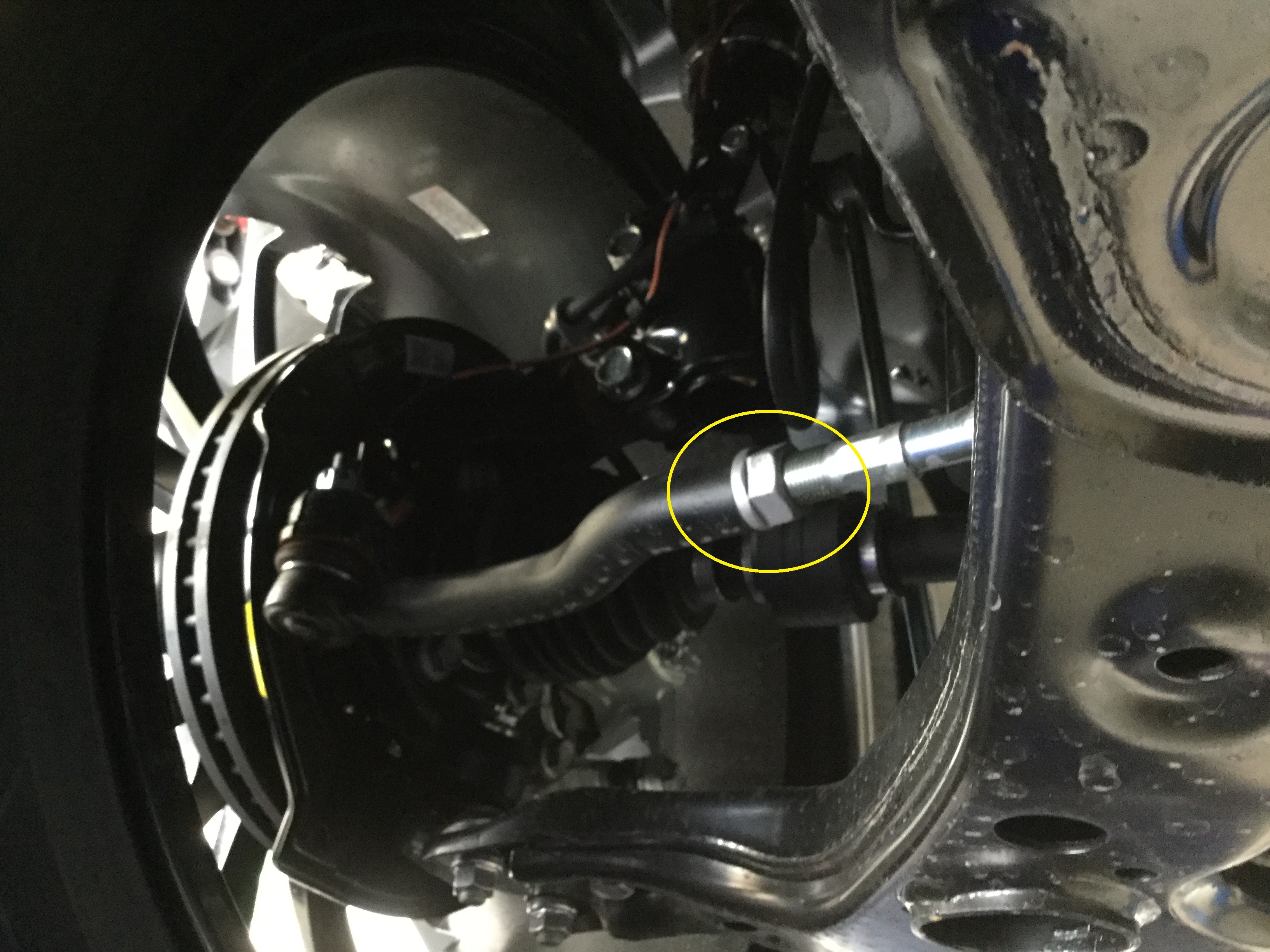 続いてフロントのトーを調整です。タイロッドエンドのナットを緩めます。