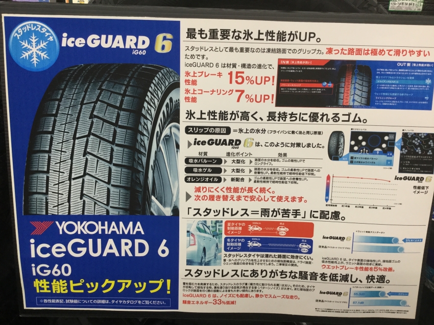 只今、当店にヨコハマタイヤのプレミアムモデルのアイスガード6