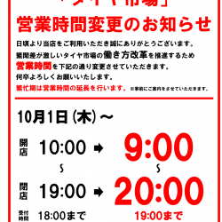 AM9:00~PM8:00(ピット作業受付:AM9:00~PM7:00)1月/2月/5月/6月/7月/8月/9月