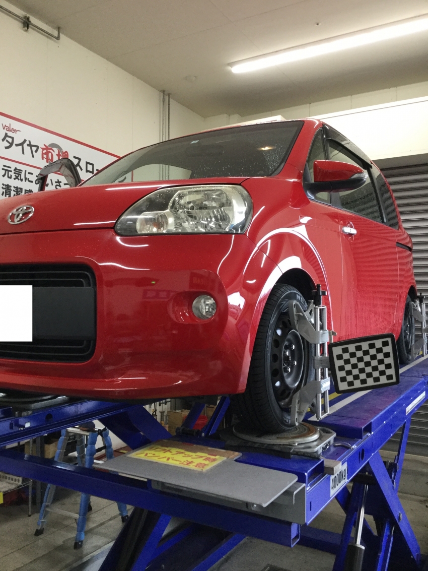 本日は、トヨタ ポルテにて新品タイヤ4本交換、アライメント測定&調整をさせていただきましたので、ご紹介いたします!!