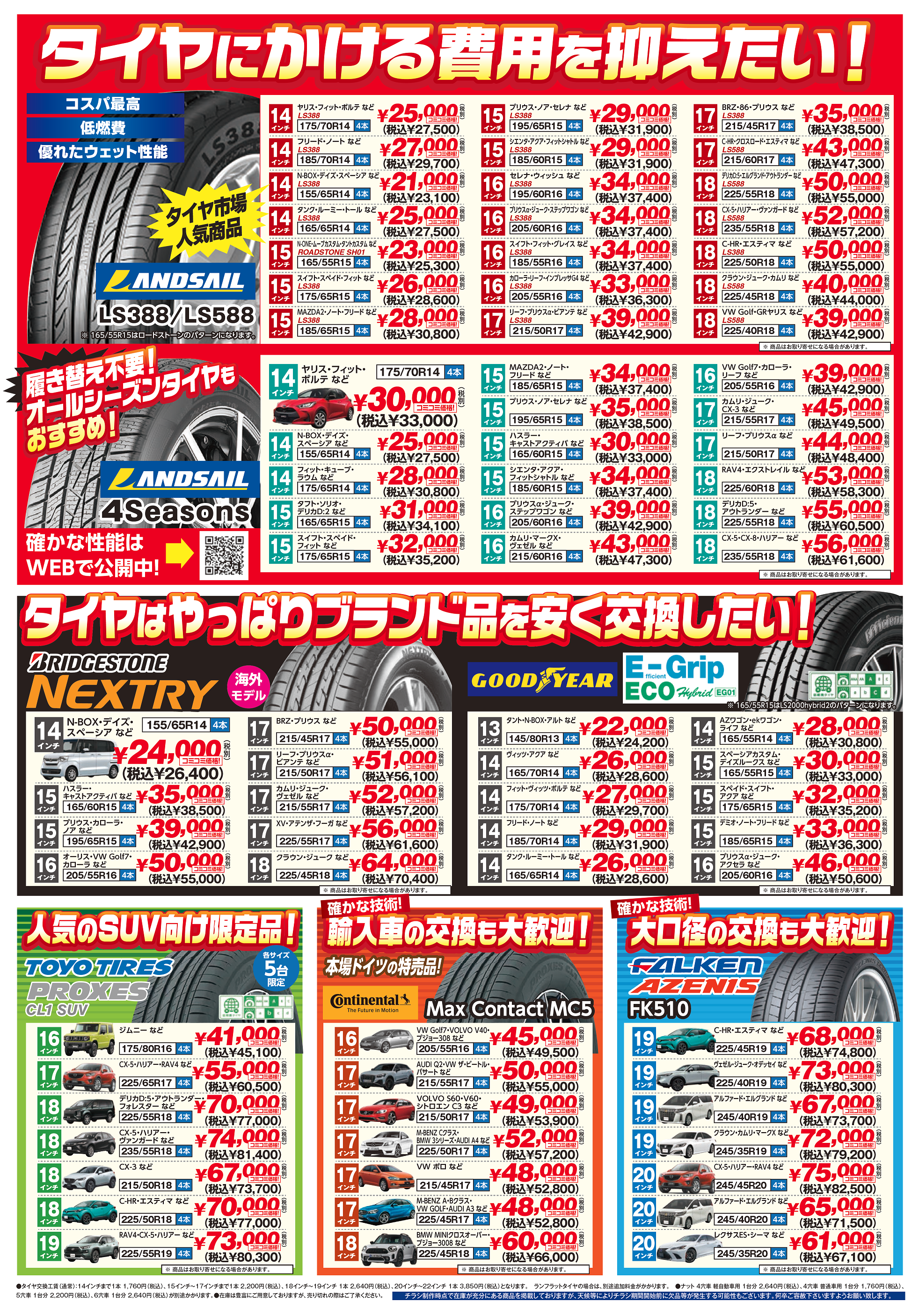 当店タイヤ市場では、先日発表させていただきましたWEBチラシの通り、夏タイヤの他にも、