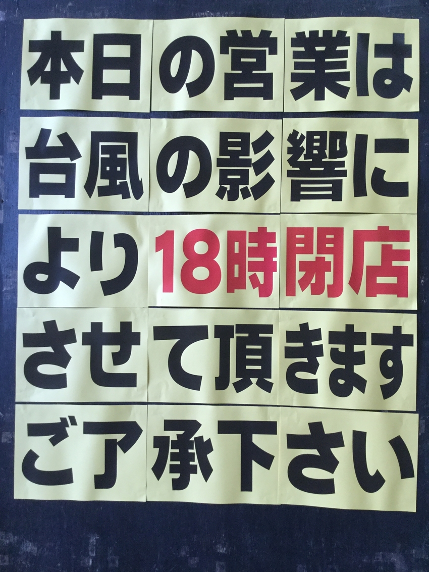 誠に勝手ながら18時にて繰り上げ閉店させていただきます