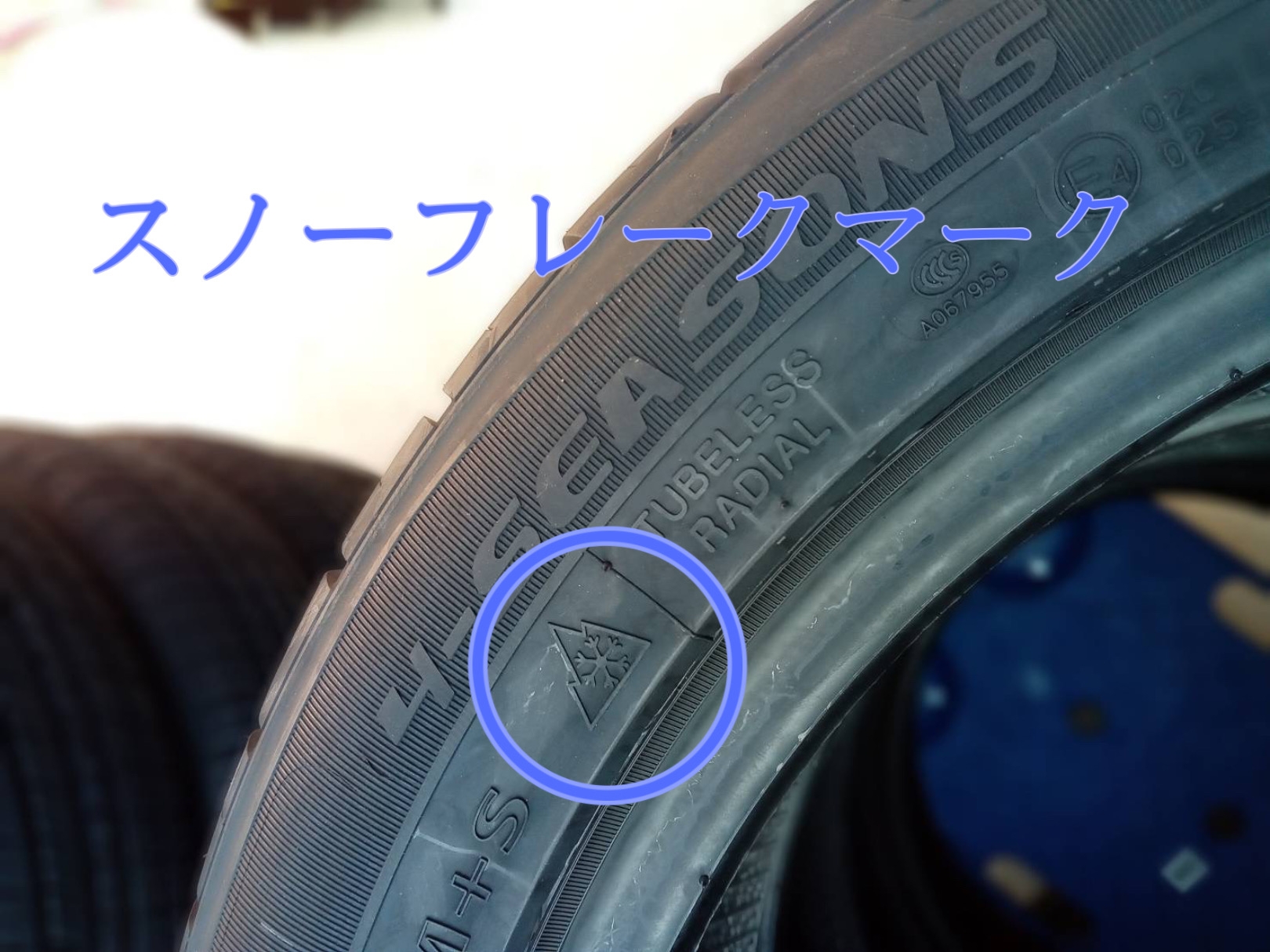 欧州で冬用タイヤと認められた性能の証の刻印アリ(スノーフレークマーク)