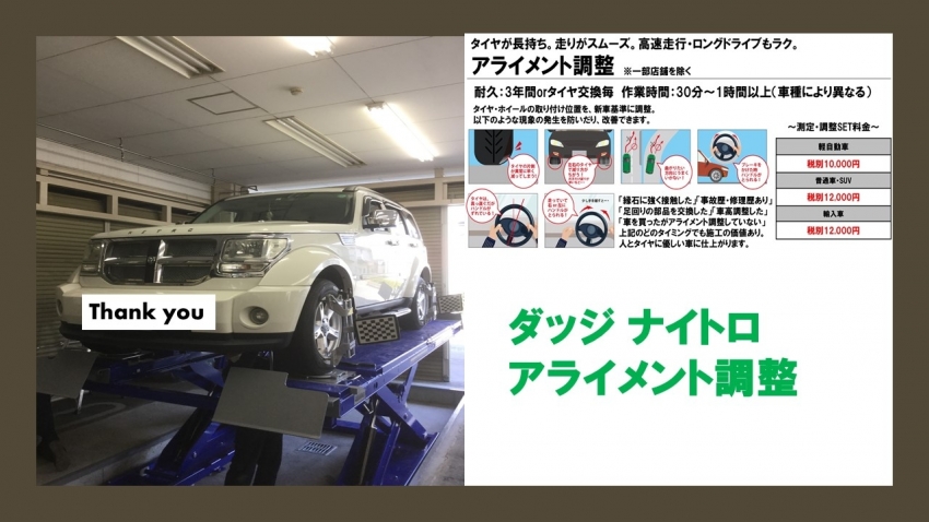 ダッジ ナイトロ 4本交換+アライメント調整!!