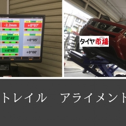 タイヤの外側が偏摩耗していた事から、アライメント調整をさせて頂きましたが、測定の結果前側タイヤが左右共に右側に向いておりましたので、調整させて頂きました。