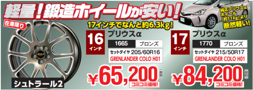 現在当店では、プリウスαにピッタリの軽量・鍛造ホイールがお買い得です(/・ω・)/