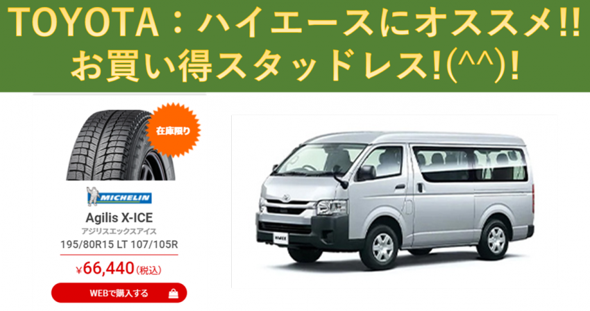ハイエース用スタッドレスタイヤのお買い得品をご紹介致します!(^^)!