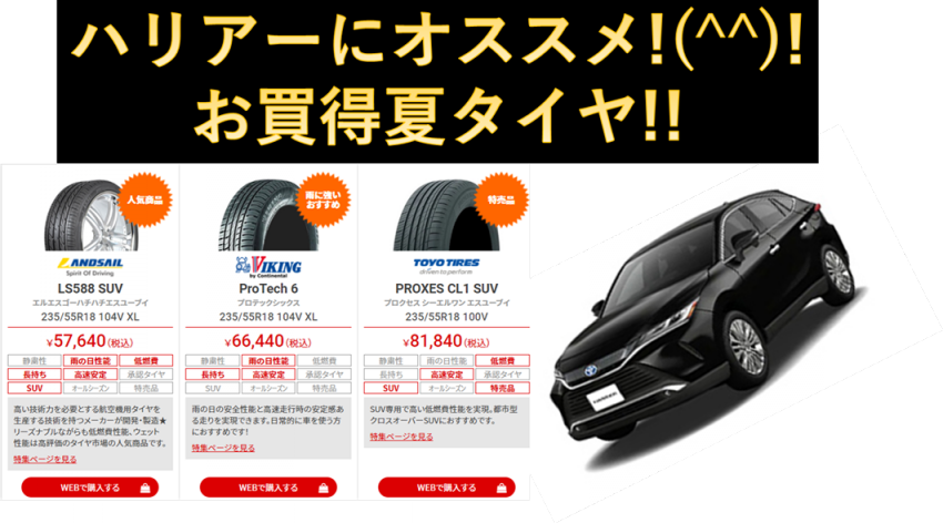 ハリアーにオススメのお買得な夏タイヤをご紹介致します!(^^)!