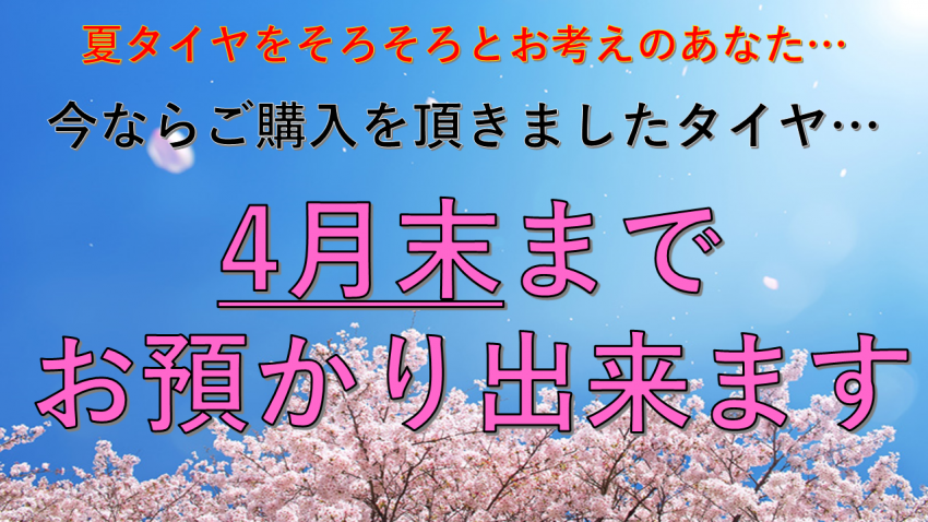 ただいまご購入頂いた夏タイヤは4月末までお預かり出来ます!(*´▽`*)