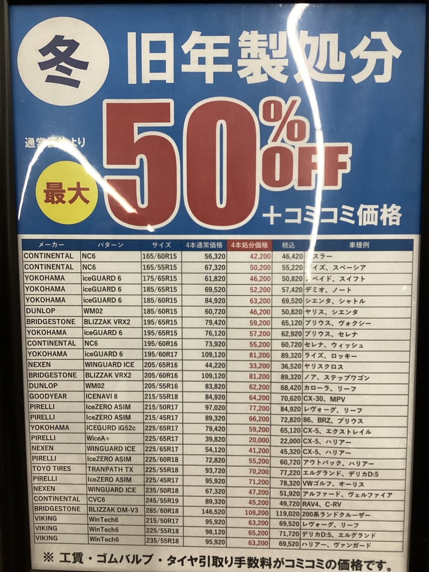 数量限定でスタッドレスタイヤが安くなってます(=゚ω゚)ノ