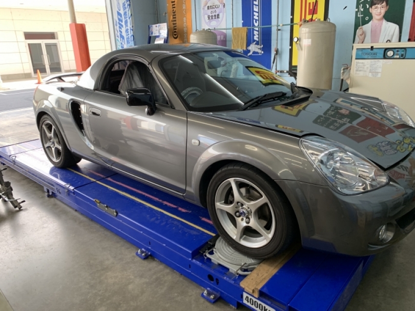 そんな中、トヨタのミッドシップ車のMR-Sのアライメント調整を行わせていただきました!!