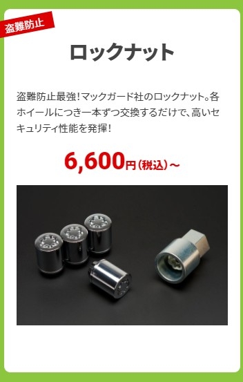 更に・・・ホイールの盗難防止用ロックナットや、隙間を埋めるスペーサー等も販売しております!