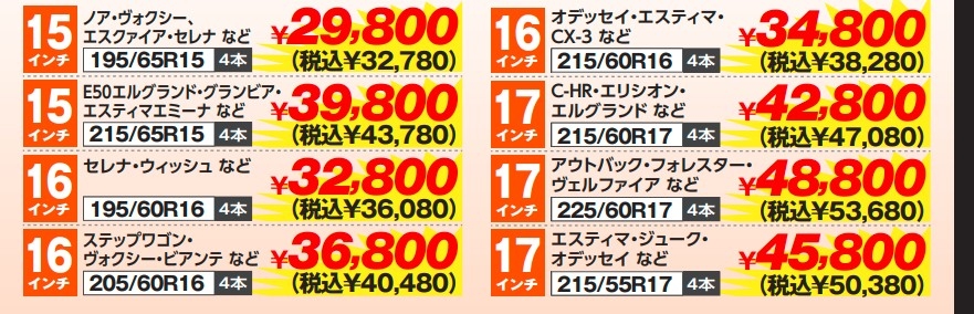 ヨコハマタイヤが安い! ミニバン セダン コンパクト