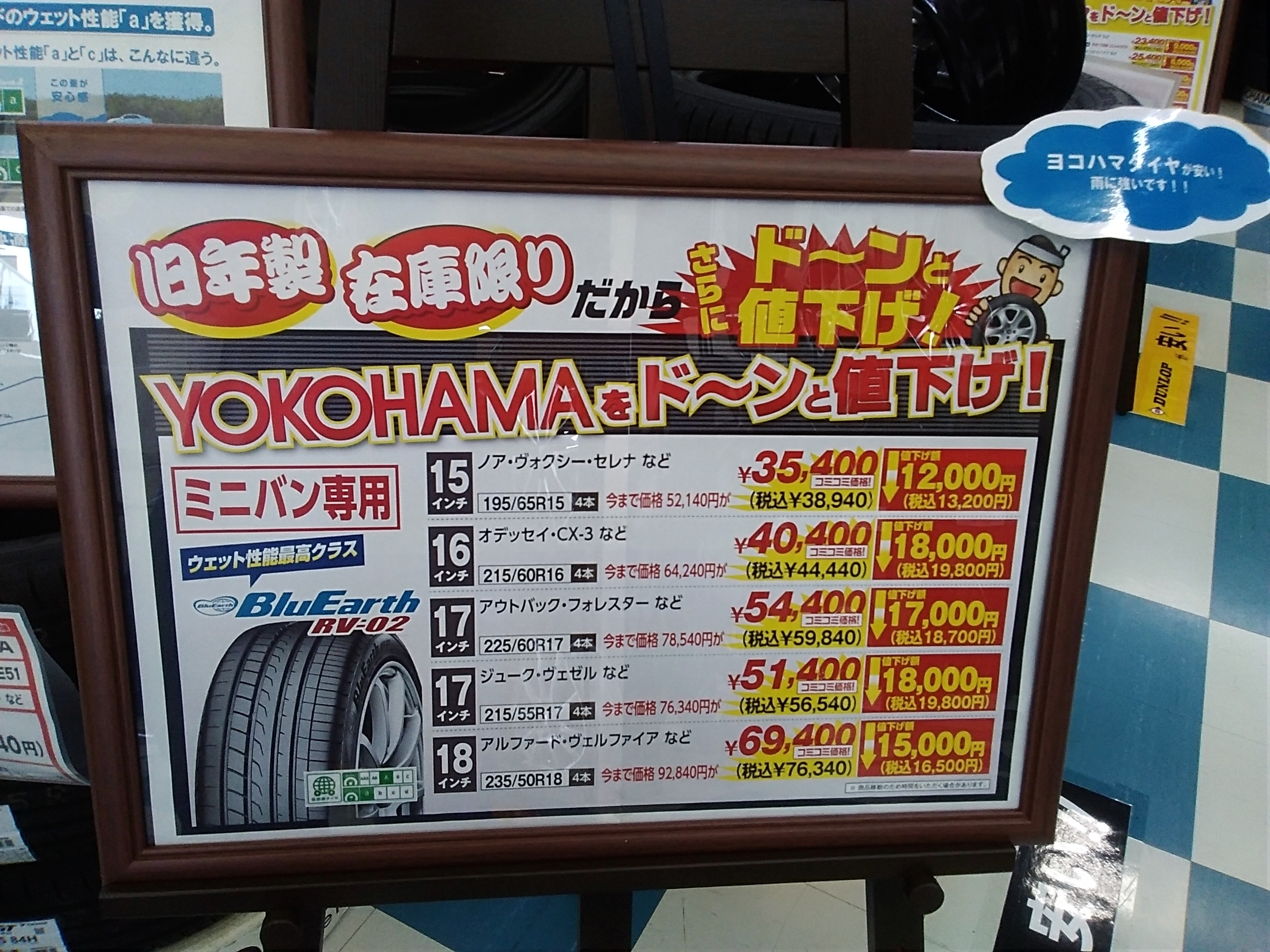 旧年製タイヤが安い!!(ダンロップ・トーヨー・ヨコハマ)