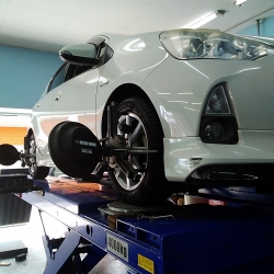 今回はWRXSTIのホイールアライメントを調整いたしました。