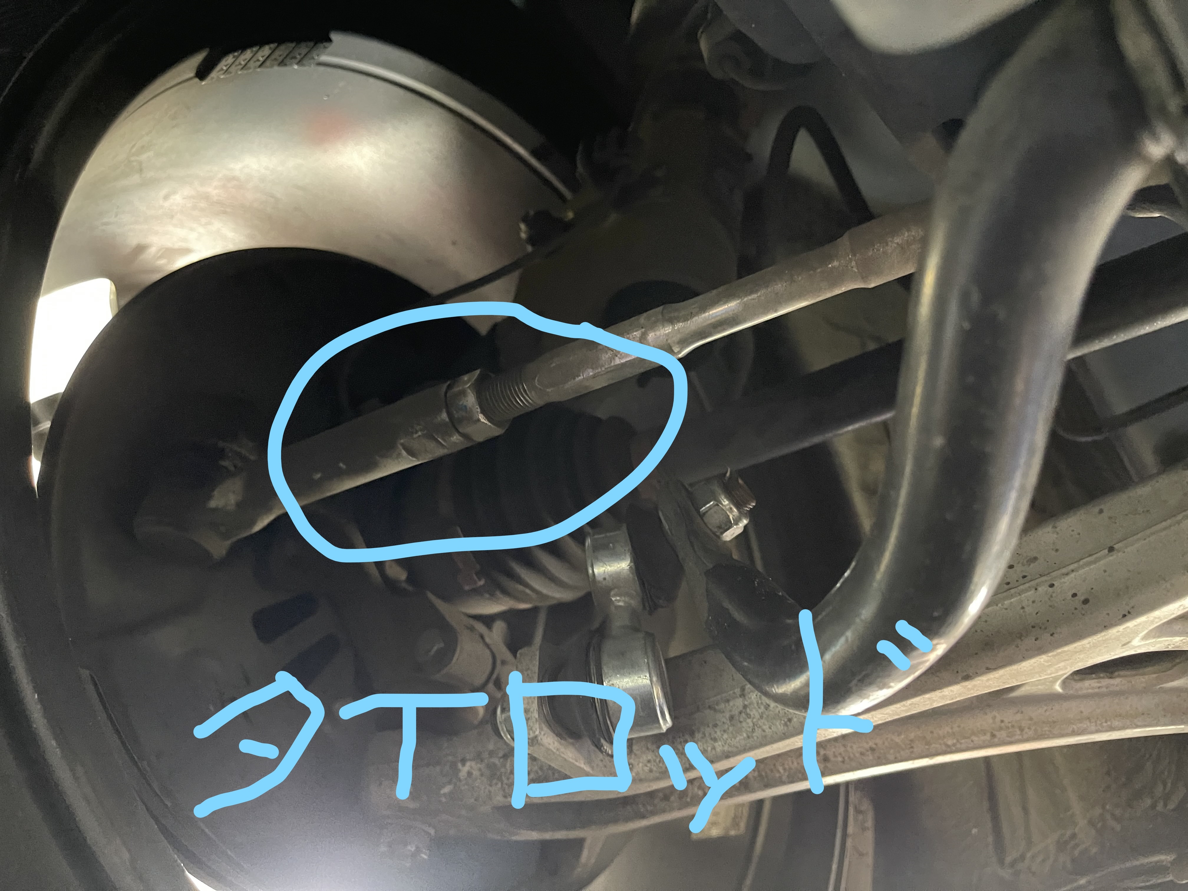 タイロットのロックナットを緩めてタイロットを回すとトゥ角が調整できます。