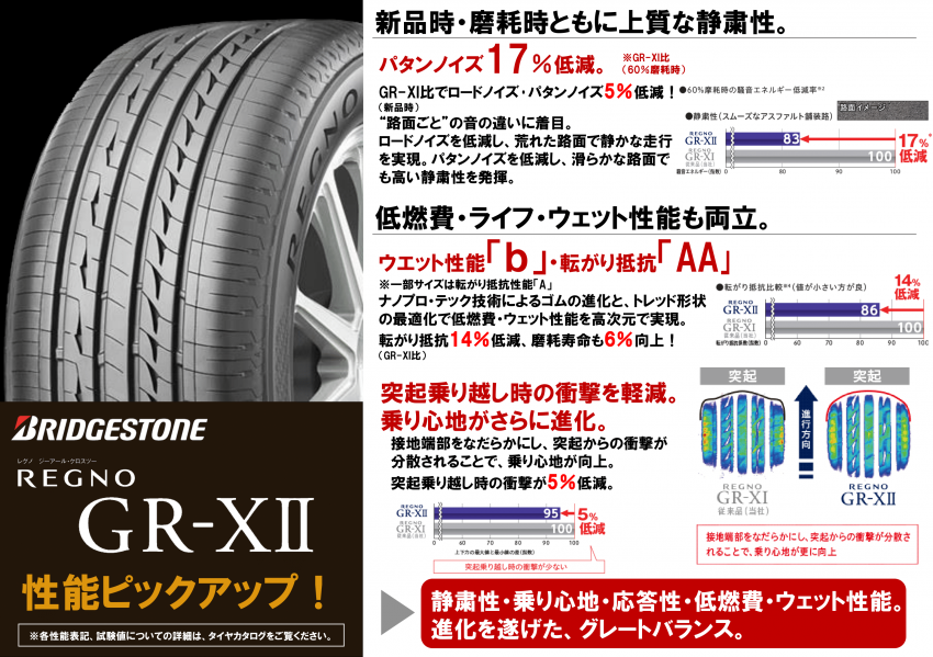 こちらのタイヤの特徴としては、走行時の静穏性、快適性が他のタイヤと比べても高性能であり、静かで乗り心地のいいタイヤを選ぶなら非常におすすめのタイヤとなります!